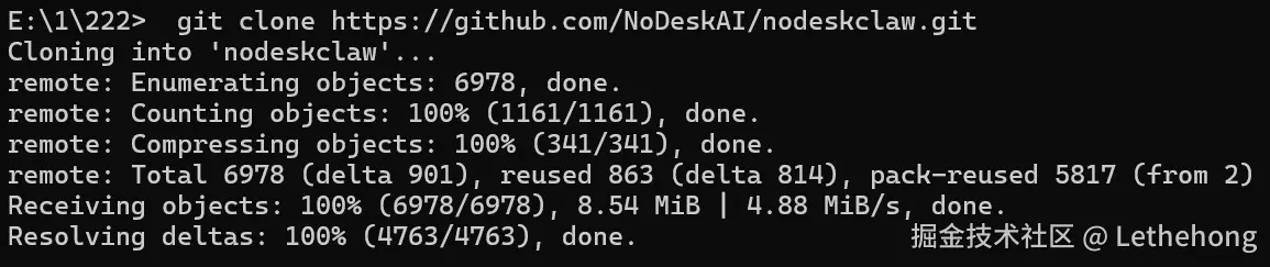 完成后,请确保你的终端(PowerShell 或 CMD)当前目录位于 nodeskclaw 文件夹内。