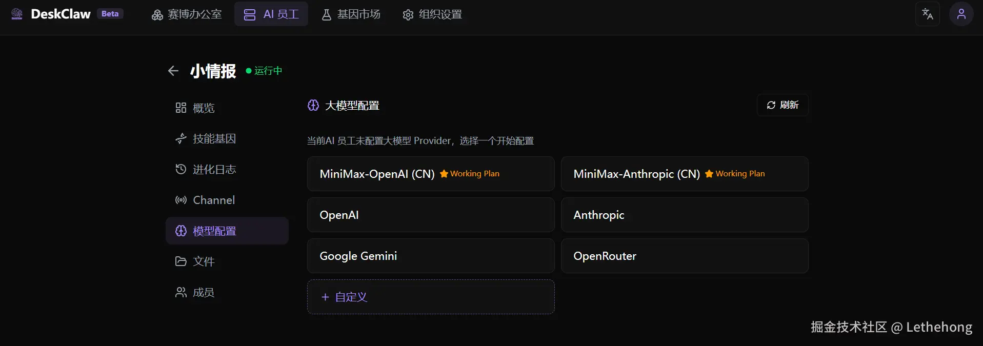 AI 同事需要大模型才能思考和总结。在“设置”->“模型配置”中: