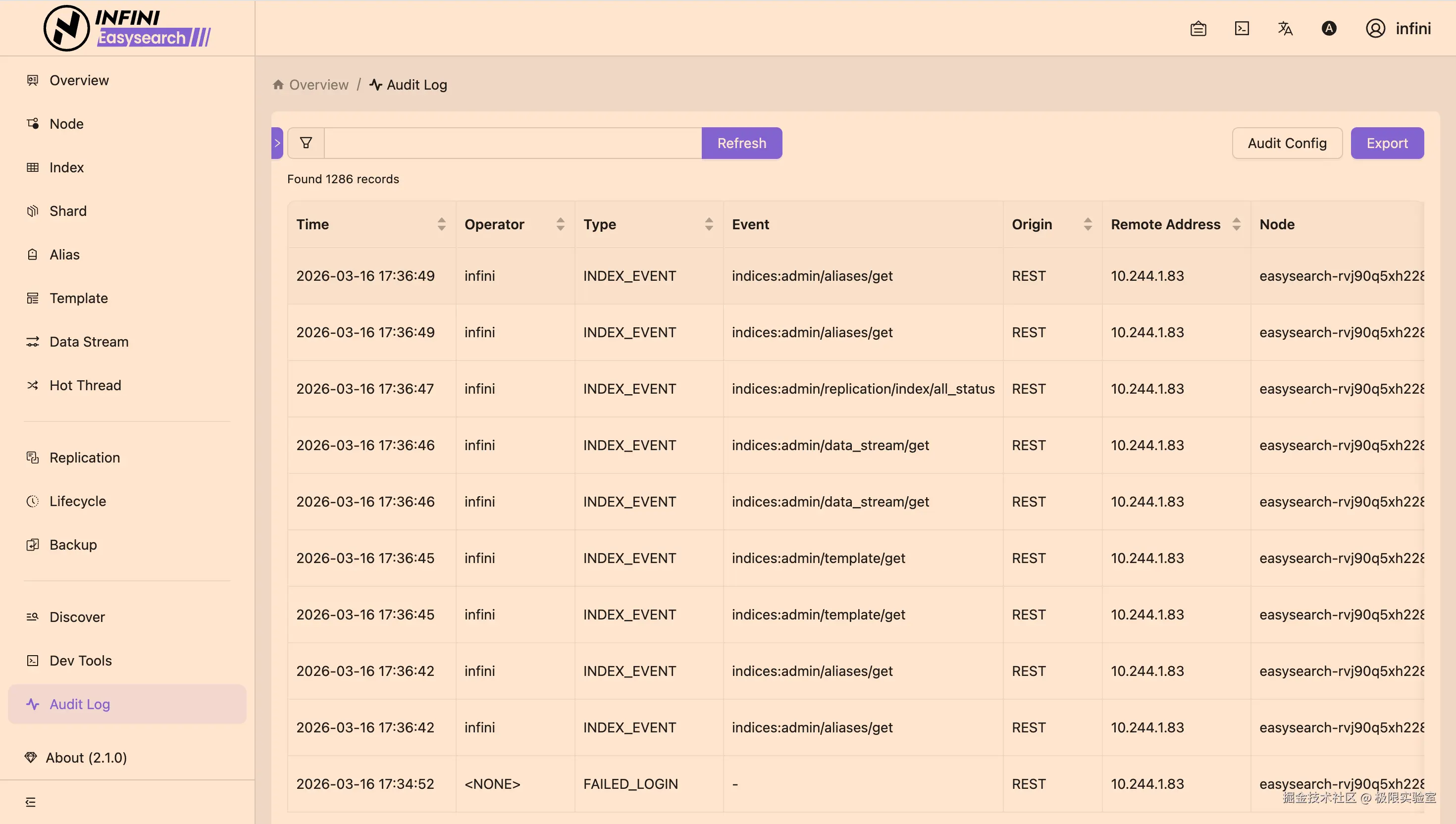 INFINI Easysearch v2.1.0 发布:新增 Rules 规则引擎(百万级规则、复杂表达式、自动同步恢复)与 形态学分析插件(俄语/英语词形还原,提升搜索召回率);审计日志支持动态用户审计,UI 新增日志查看、配置及数据探索页面,运维更高效。INFINI Console、Gateway、Agent、Loadgen v1.30.3 统一基于 Framework 升级,优化本地磁盘队列数据消费。详情见 Release Notes。