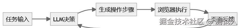 它并不是完全“脱离规则”的智能系统,底层仍然依赖浏览器自动化能力(如 Playwright),只是通过大模型把操作逻辑动态化了。