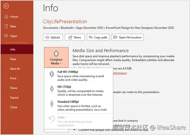如果您的演示文稿太大而无法通过电子邮件发送,PowerPoint 有一个内置功能可以缩小嵌入在幻灯片中的视频。