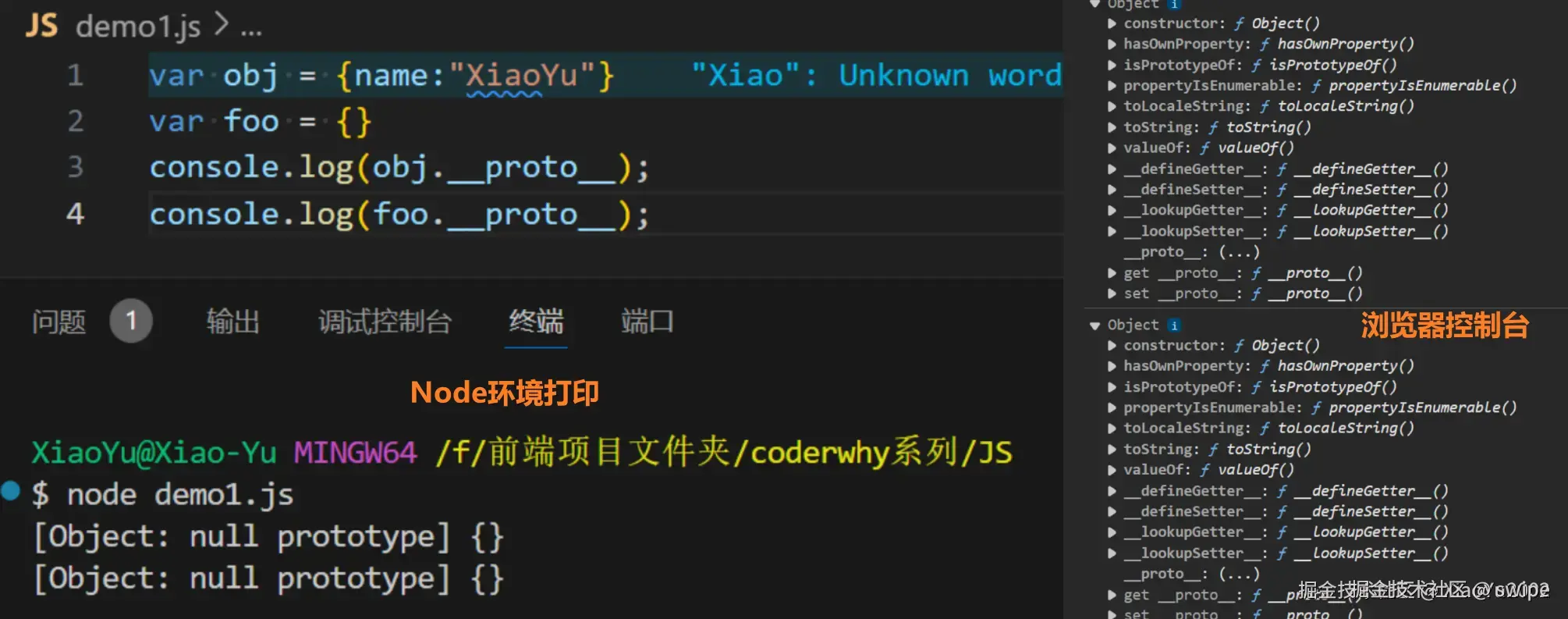 图:隐式原型在浏览器与终端中的表现