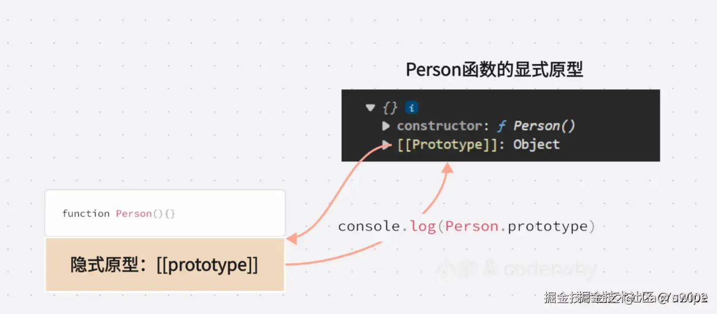 prototype:定义将来由这个构造函数创建出来的实例,应该共享什么[[Prototype]]:当前这个对象,实际沿哪条链路去查找属性