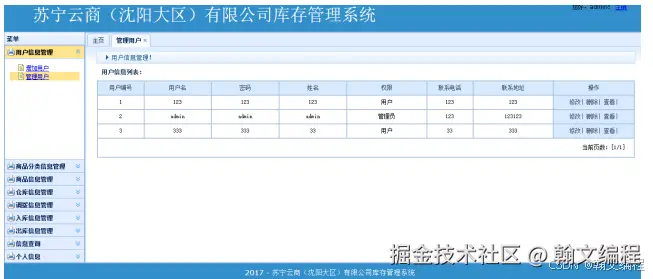 本系统的名称是“苏宁云商(沈阳大区)有限公司库存管理系统”,界面要求是简洁大方,避免过度包装,目的是为了为企业用户提供一个操作平台,普通用户在本系统中只是商品管理、库存管理、信息浏览等,管理员管理除了拥有普通用户的功能还具有权限分配和用户管理。