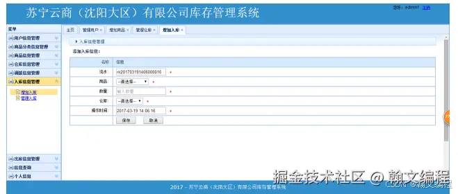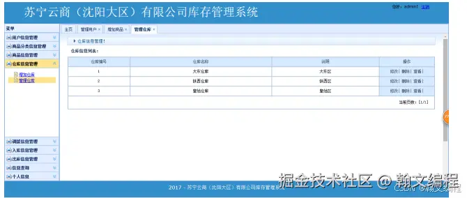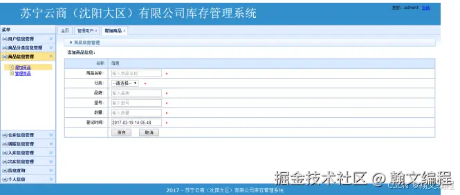 普通用户或管理员输入自己的用户账号、密码,通过身份验证后可以进入相应的管理界面首页。管理员管理页面分为权限管理、用户管理、库存管理、商品管理、仓库管理、调配管理等功能。普通用户管理页面分为库存管理、商品管理、申请管理、仓库管理等模块。