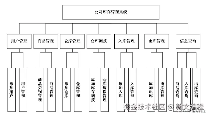 信息化商务苏宁云商(沈阳大区)有限公司库存管理系统主要分为2个权限:管理员权限、普通权限。不同的身份登录系统会有不同的权限,进行不同的操作,系统主要设计了权限分配、用户管理、商品管理、库存管理、信息查询等功能,满足企业单位利用信息化平台进行商品的库存管理,具体功能模块图如4.1所示: