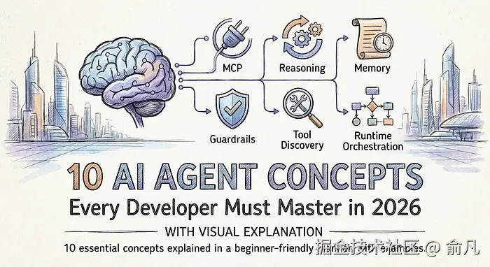 从 MCP 插件系统到运行时编排,本文用可视化方式讲解了构建生产级 AI 智能体必须掌握的 10 个核心概念,帮你把 AI Demo 变成真正可靠的生产系统。原文:10 AI Agent Concepts Every Developer Must Master in 2026 ( With Visual Explanation))