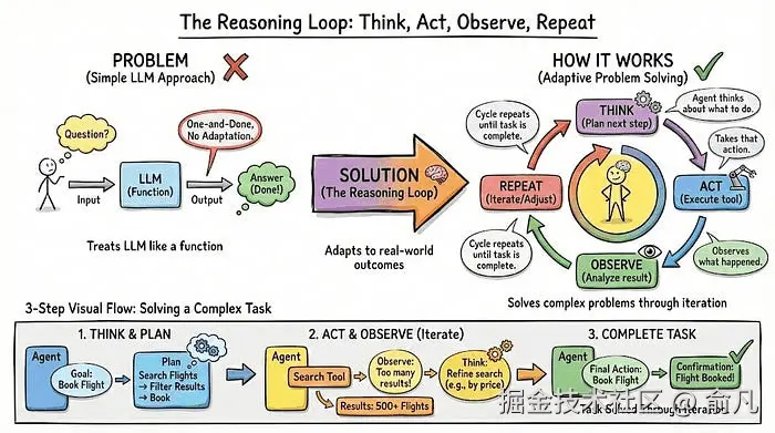 2. 推理循环(The Reasoning Loop):思考、行动、观察,重复
