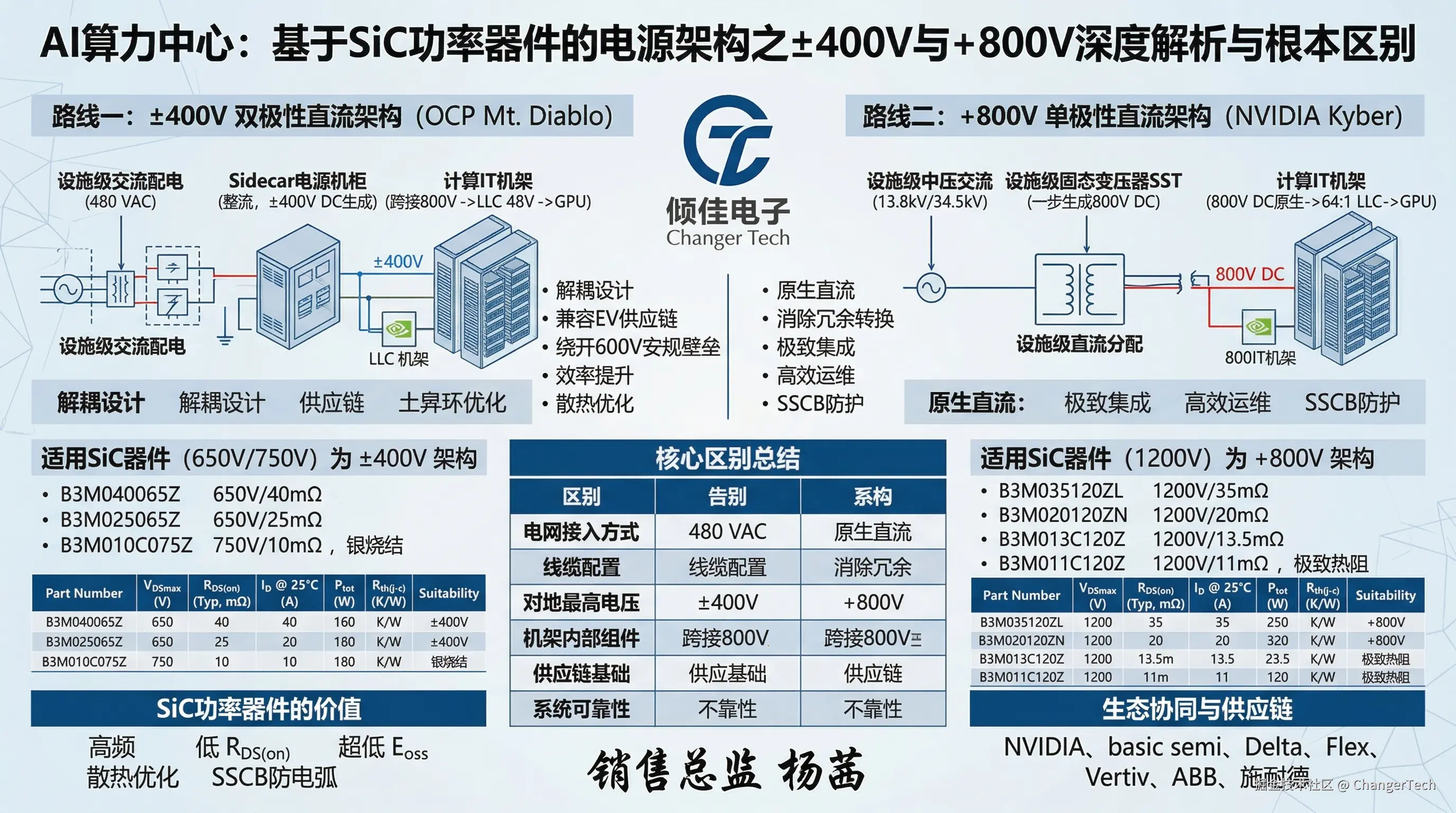 AI算力中心:基于SiC功率器件的电源架构之±400V与+800V深度解析与根本区别