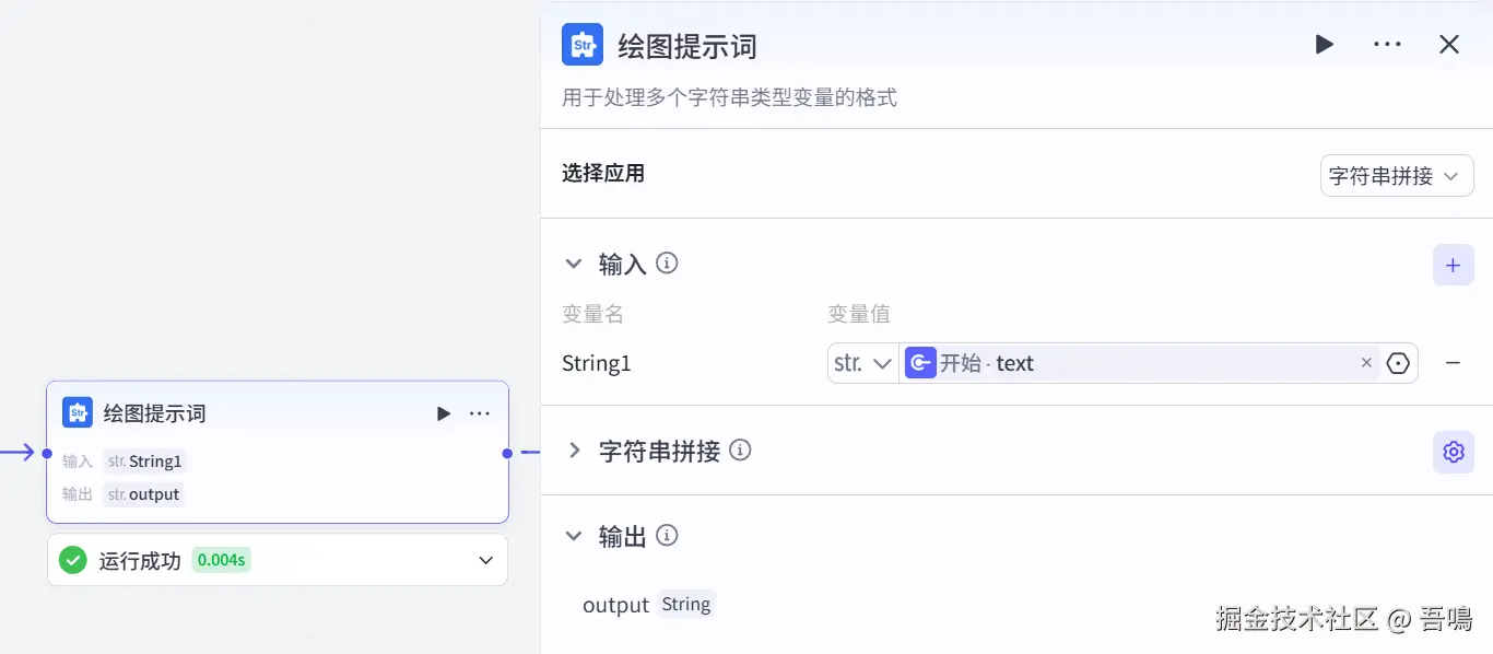 这个是一个绘图提示词模板,它把输入的长文本文案和提示词模板拼接在一起,形成一个完整的提示词。