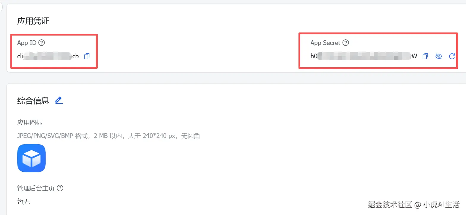 填写应用名称(如「玥玥小精灵」)、描述、图标