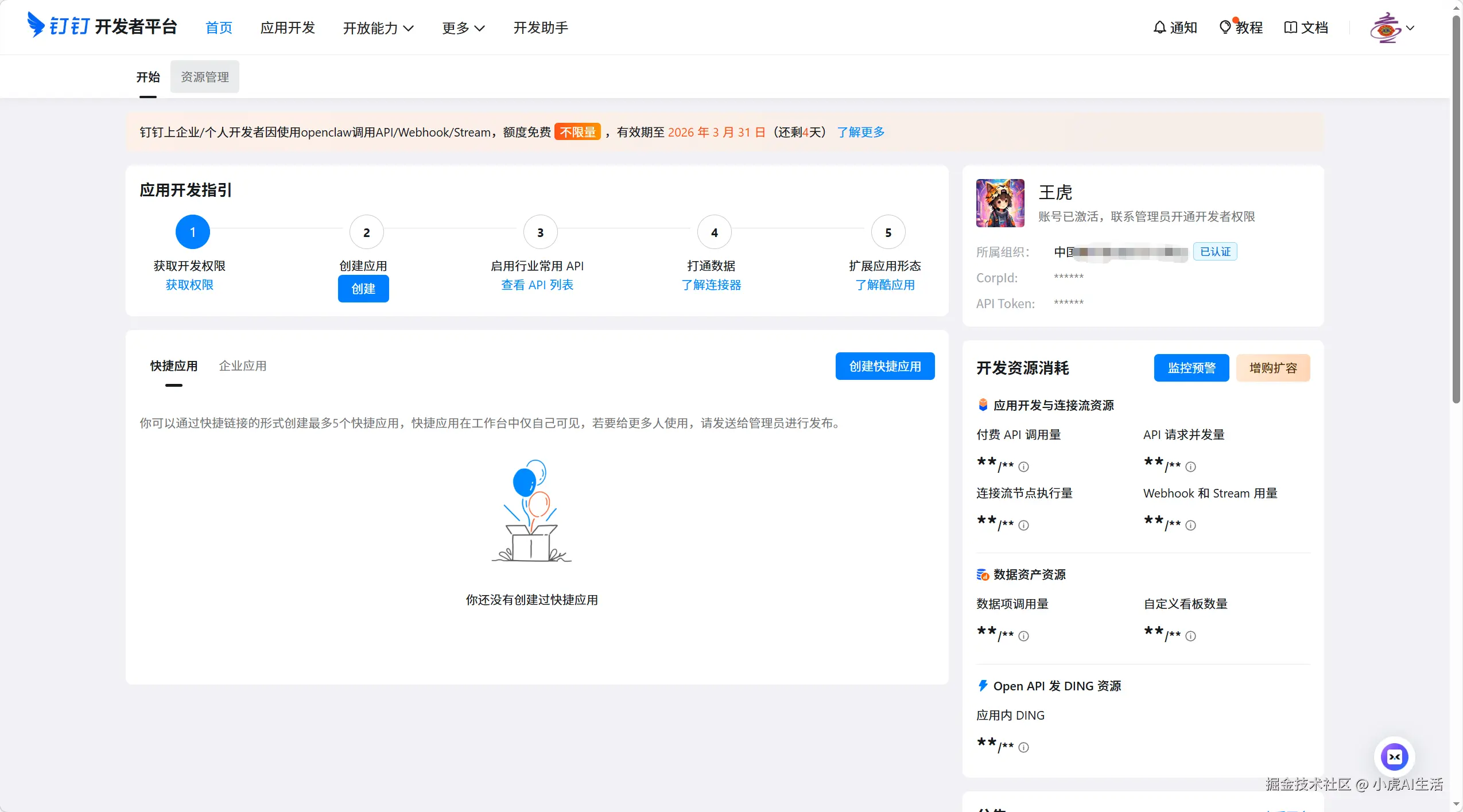 渠道六:钉钉(20 分钟,流程与飞书类似)