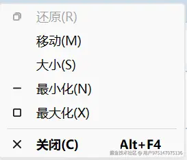 然后我们右键电脑窗口,其不再只有简单的几个最大化、最小化、移动那几个按钮,而是多了10几20个扩展功能。
