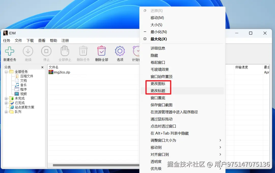 更改图标和标题: 细心的小伙伴会发现,我上面的IDM的图标改变了,而且名字也改变了,原来是这样的: