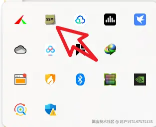 软件是绿色版,双击打开软件后没有界面,但是在电脑右下角有软件的图标,就是这个“SSM”的软件图标。