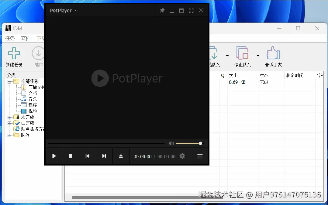 注意这里的窗口置顶的功能要优于软件自带的置顶的功能,比如potplay也有置顶的功能,当我们使用SSM置顶IDM以后,potplay本身的置顶会被SSM置顶的窗口覆盖。