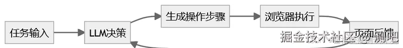 它并不是完全“脱离规则”的智能系统,底层仍然依赖浏览器自动化能力(如 Playwright),只是通过大模型把操作逻辑动态化了。