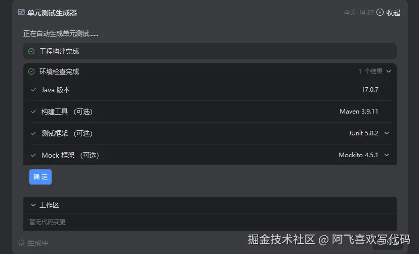飞算JavaAI的AI工具箱中,内置了专门的单元测试生成器,不是简单的代码补全,而是完整的测试流程自动化。