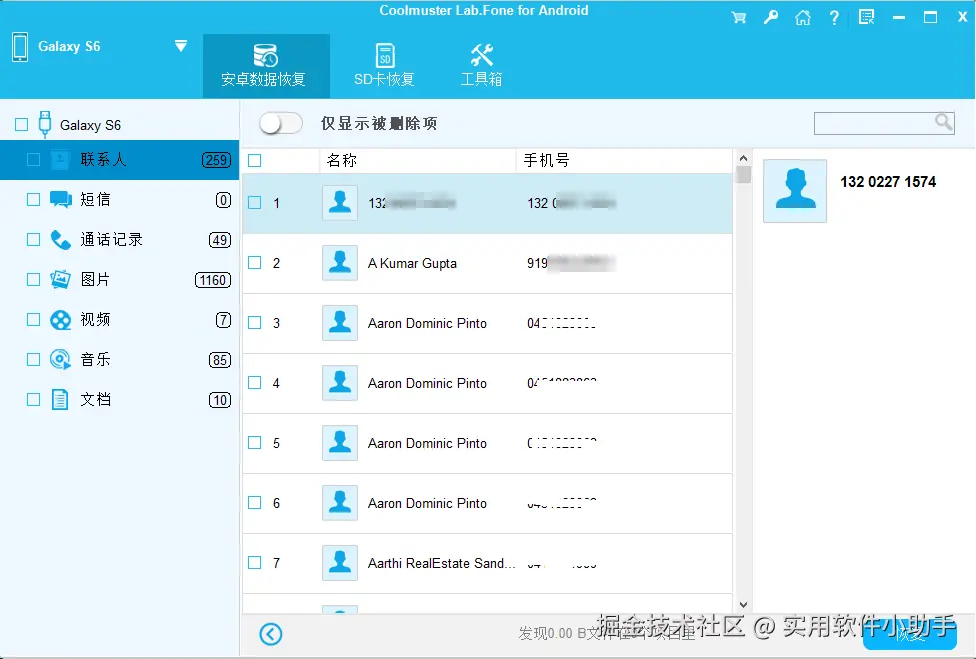 Coolmuster Lab.Fone for Android 的主要亮点:1.从 SIM 卡和 Android 设备的内部和外部存储器中恢复已删除的通话记录、照片、联系人、文档、短信。