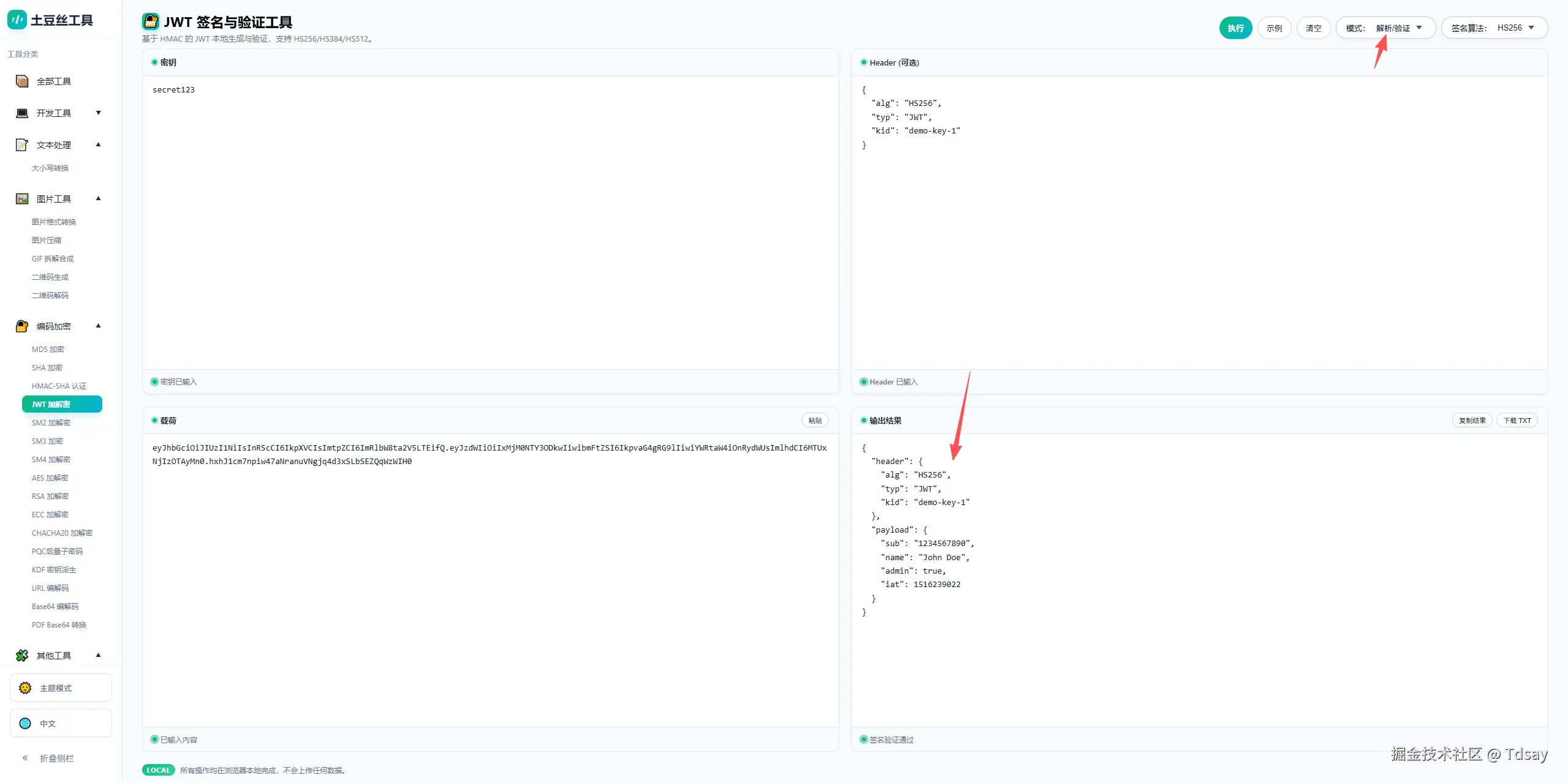 理解 JWT 的签名与验证机制,可以帮助开发者更好地掌握现代 Web 认证体系。在学习和调试过程中,通过浏览器直观查看签名结果和解析结构,也是一种比较高效的理解方式。