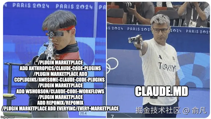 网上有人玩过一个梗,用 2024 巴黎奥运会射击项目的对比图开玩笑说,Claude Code 用户分两种: