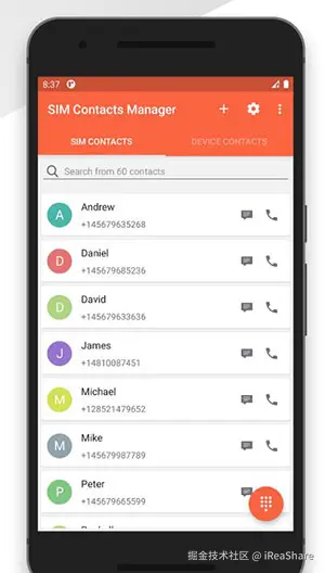 - 查看 SIM 卡联系人:授予应用相关权限,切换至 SIM 卡联系人查看页面。