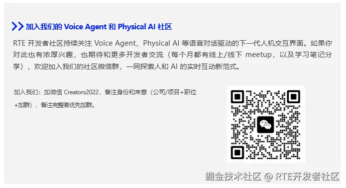 💡 我们也新开了一个「Physical AI+多模态」微信群,欢迎关注 AI 硬件、跨平台开发、语音交互、视觉理解等方向的伙伴申请加入!