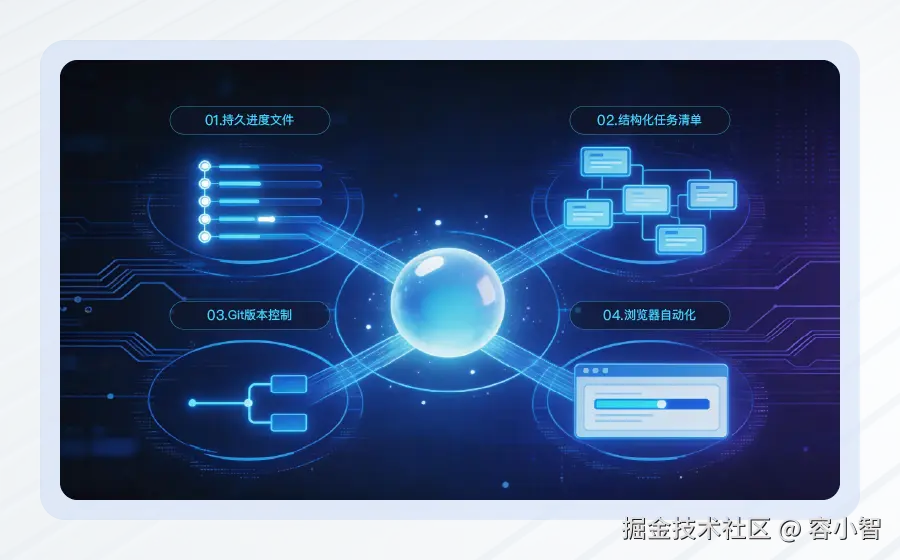 每次会话开始时读,结束时写,记录“上次做了什么、完成了什么、留下什么状态”,防止Agent“提前宣布胜利”,避免半途而废。