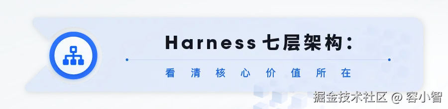 整个Harness生态被清晰分为七层,从下到上价值递增,也能帮我们看清:真正的核心竞争力在哪里。