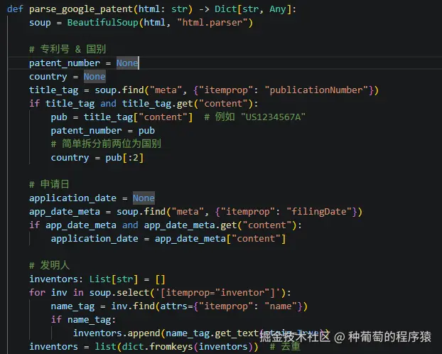 这个数据结构参考了专利信息的国际标准,应该能够满足大多数应用场景的需求,在数据解析阶段,系统会将从不同数据源获取的原始数据转换为这个标准格式。