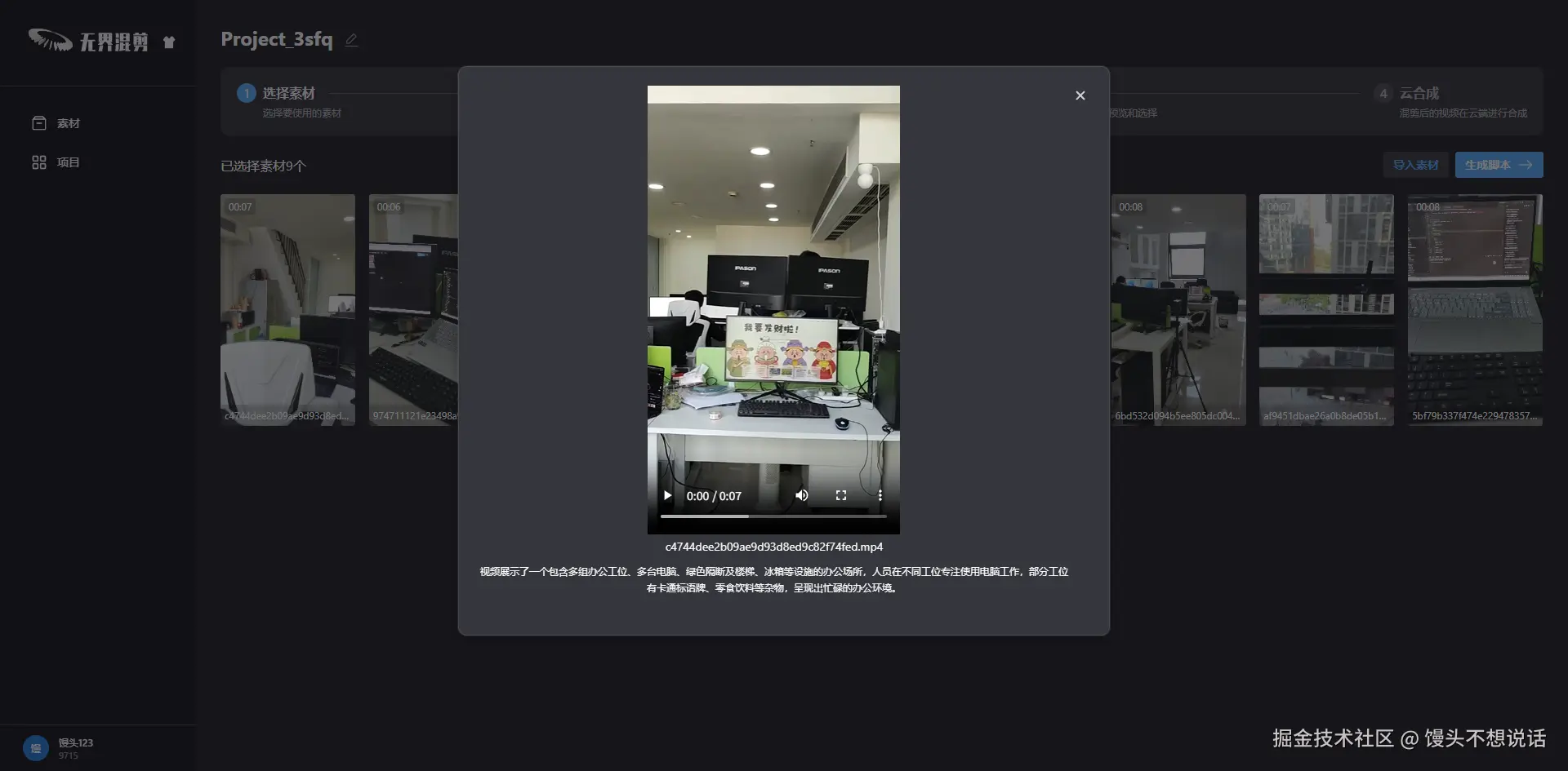 我随意拍摄了一些公司内部的视频素材,上传到这个工具。