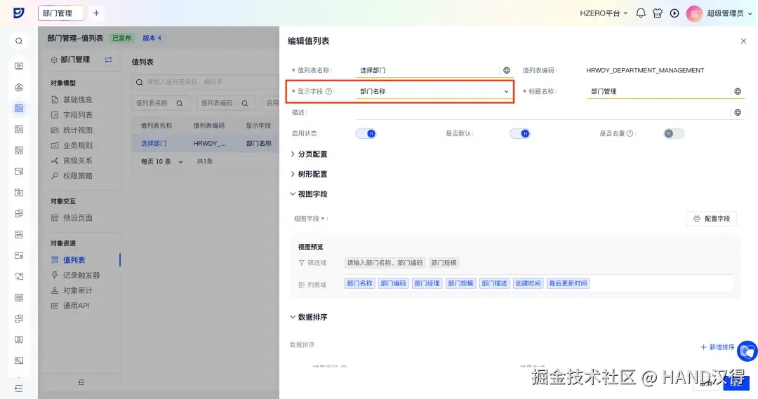 低代码平台的值列表功能是供其他业务对象通过从主字段、关联字段、关联关系多选字段查询数据的核心资源,它以列表弹窗的形式展示,是实现跨对象数据联动的关键组件。