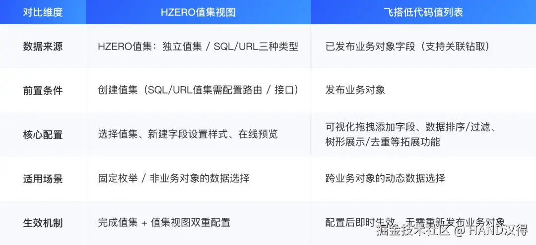 H-ZERO的值集视图也具备弹窗展示与字段选择能力,二者核心差异如下: