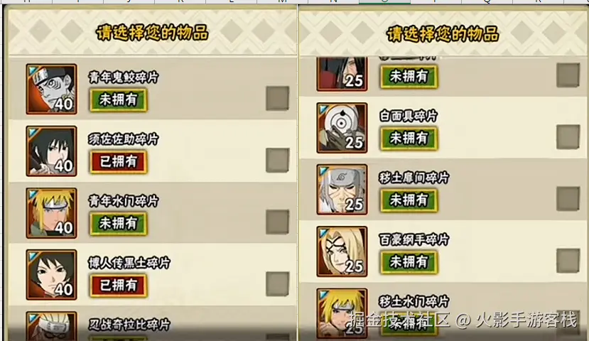 接下来博闻录的奖励方面除了能获取鬼餃的整卡外,还有有25片高招S碎片供大家二选一,本次高招S碎片有:秽土斑、白面具、秽土二代、百豪纲手和秽土水门。A忍整卡方面有:青年鬼餃、须佐佐助、青年水门、博人传黑土、忍者奇拉比以及博人传达鲁伊。