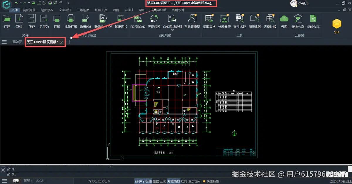 1、启动软件与打开图纸:启动浩辰CAD看图王软件,在软件界面中找到并打开需要转换格式的天正图纸,就像打开一本等待解读的书籍。