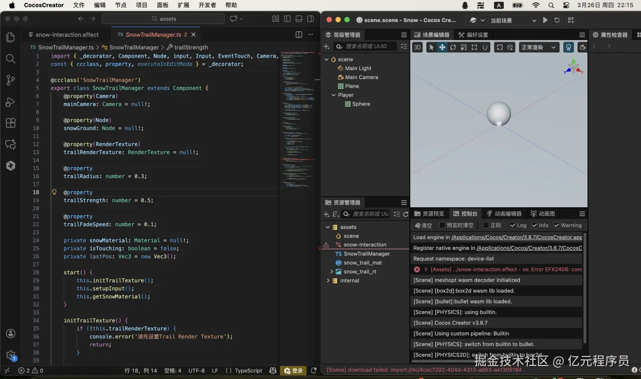像我们游戏开发者,可以把屏幕分成两个区域,左侧编码放置IDE,右侧引擎预览,更好地调节效果:
