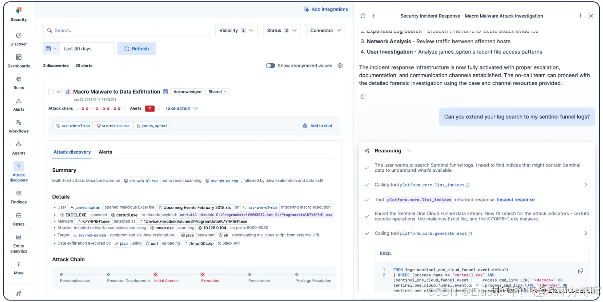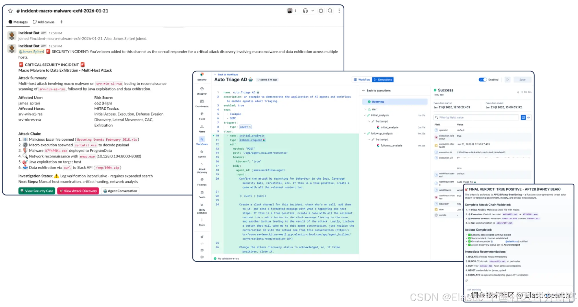 Elastic Workflows 将脚本化自动化与 AI 推理结合。以一致性和可靠性从剧本中执行已定义任务,同时 AI agents 推理处理复杂调查。