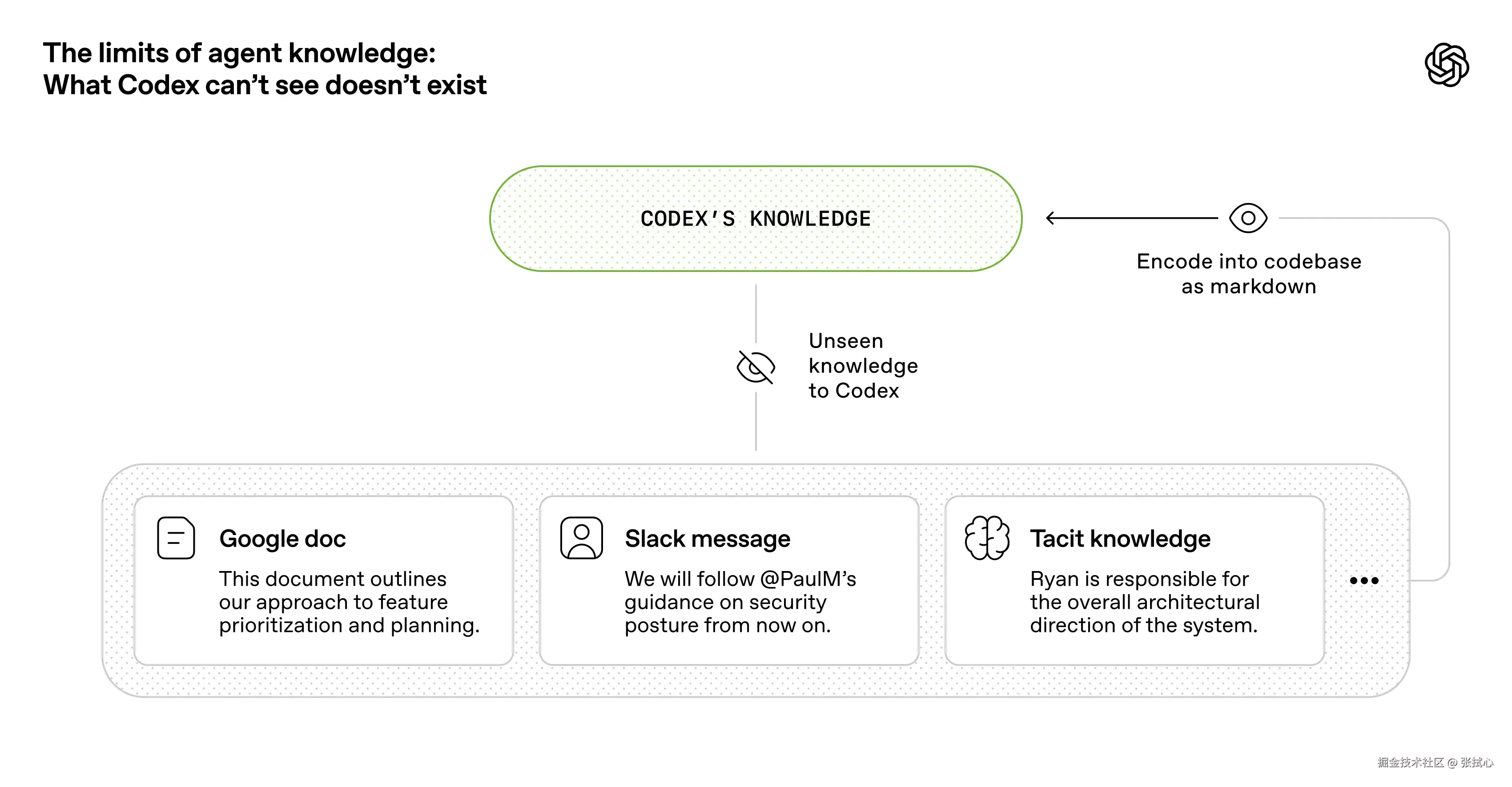 遇到问题,不是人为去解决,而是思考「智能体还需要什么样的能力」,比如 AI 无法感知到运行问题,就让应用程序的 UI、日志和应用指标等内容对 Codex 直接可读,从而让智能体可以自测、收集运行情况。