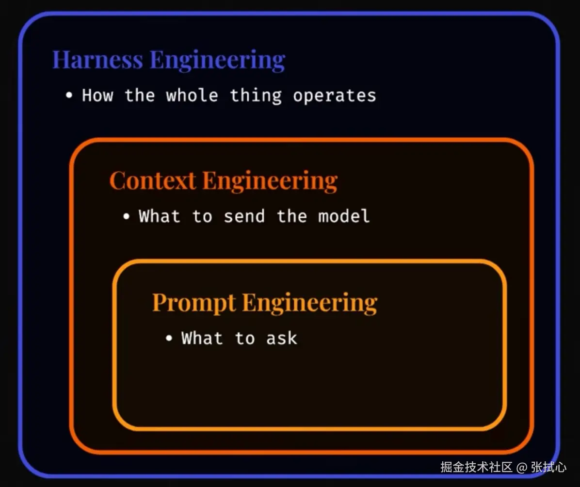 从目的上来讲,Harness Engineering(Harness 工程) 比提示词工程、上下文工程要宏大。