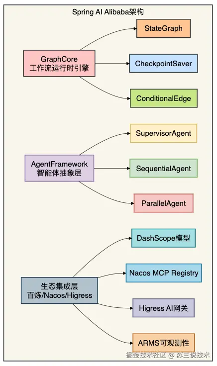 - Spring AI Alibaba将阿里云生态与Spring AI结合,提供Workflow编排能力