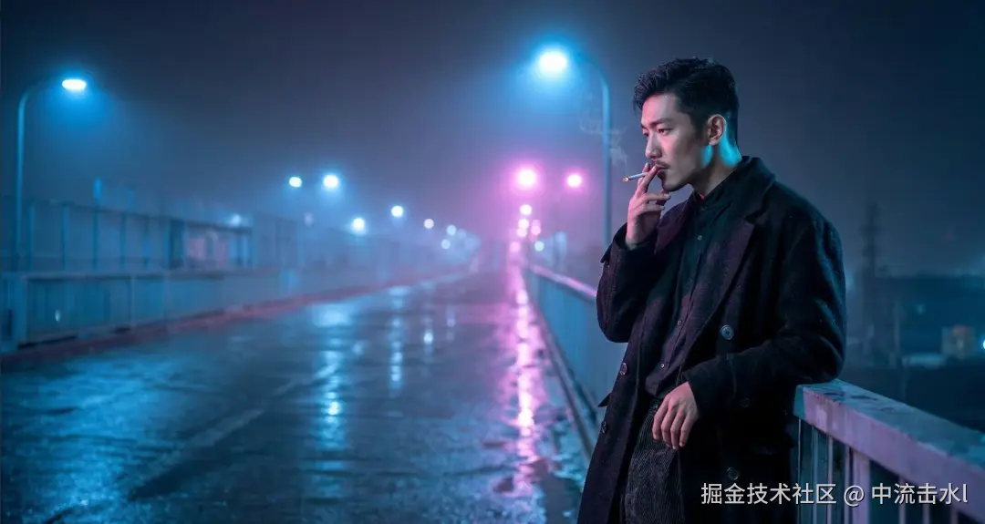 角色、桥面、夜色、灯光关系一旦先锁住,后面不管继续图生视频,还是做参考生视频,心里都会踏实很多。