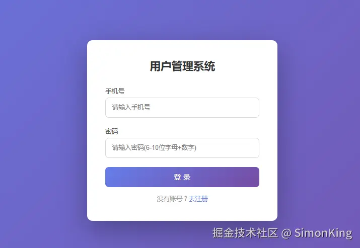 通过手机号和密码登录,手机号密码要有格式校验