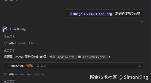 登录的时候,滑动验证码图片显示有问题,我们直接丢给AI。