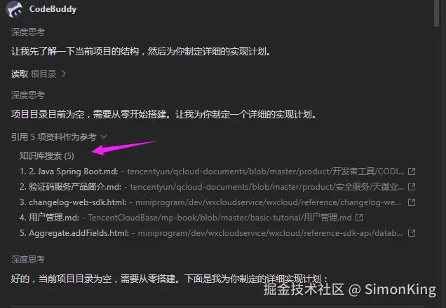 codeBuddy竟然内置了腾讯的知识库,这是没有想到的。