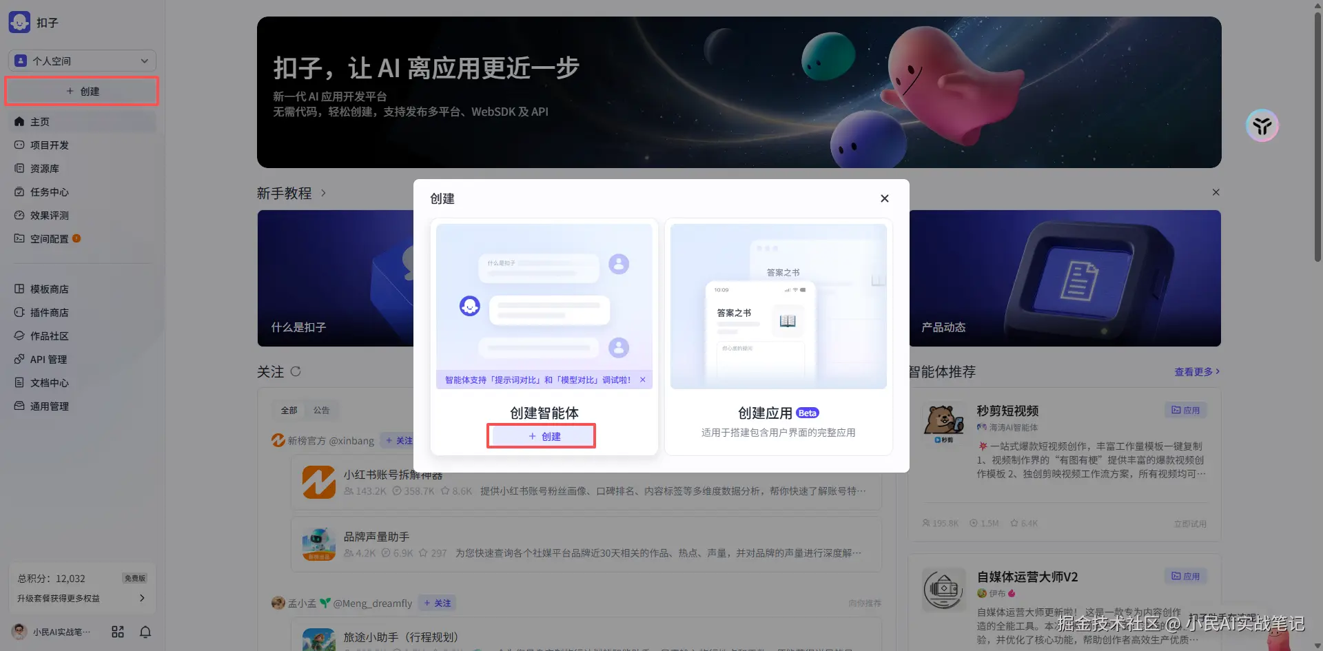 平台我选的是Coze(字节跳动旗下的智能体平台,免费,上手简单),地址在这里👇