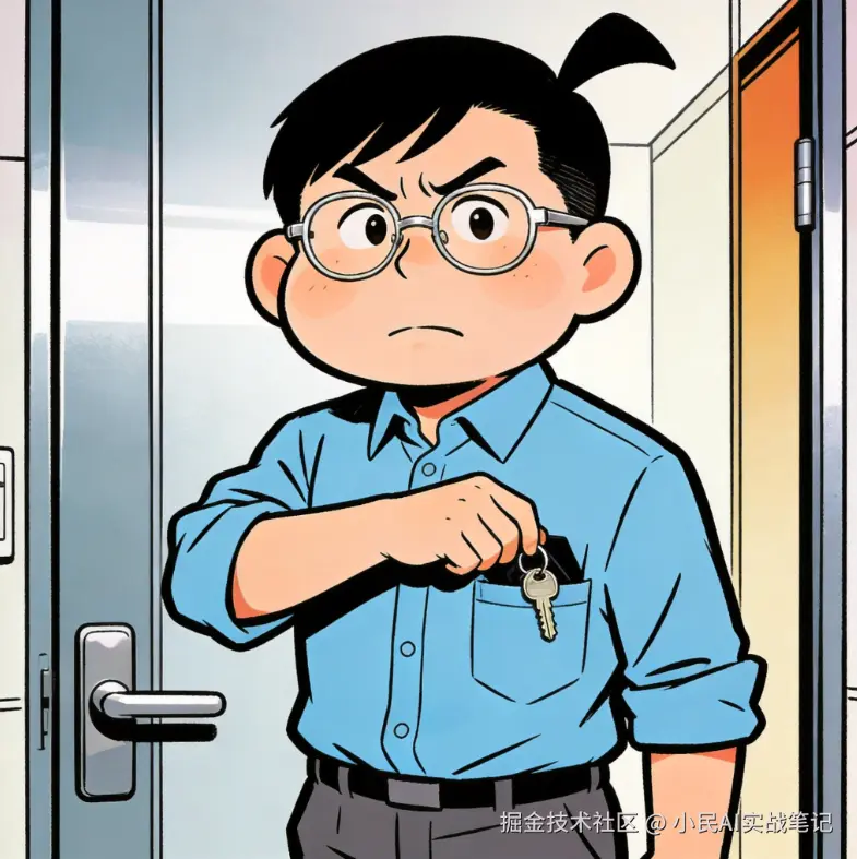 第1格:现代公寓家门口,阿瓜站在门前手伸进口袋掏钥匙,表情从正常变成疑惑