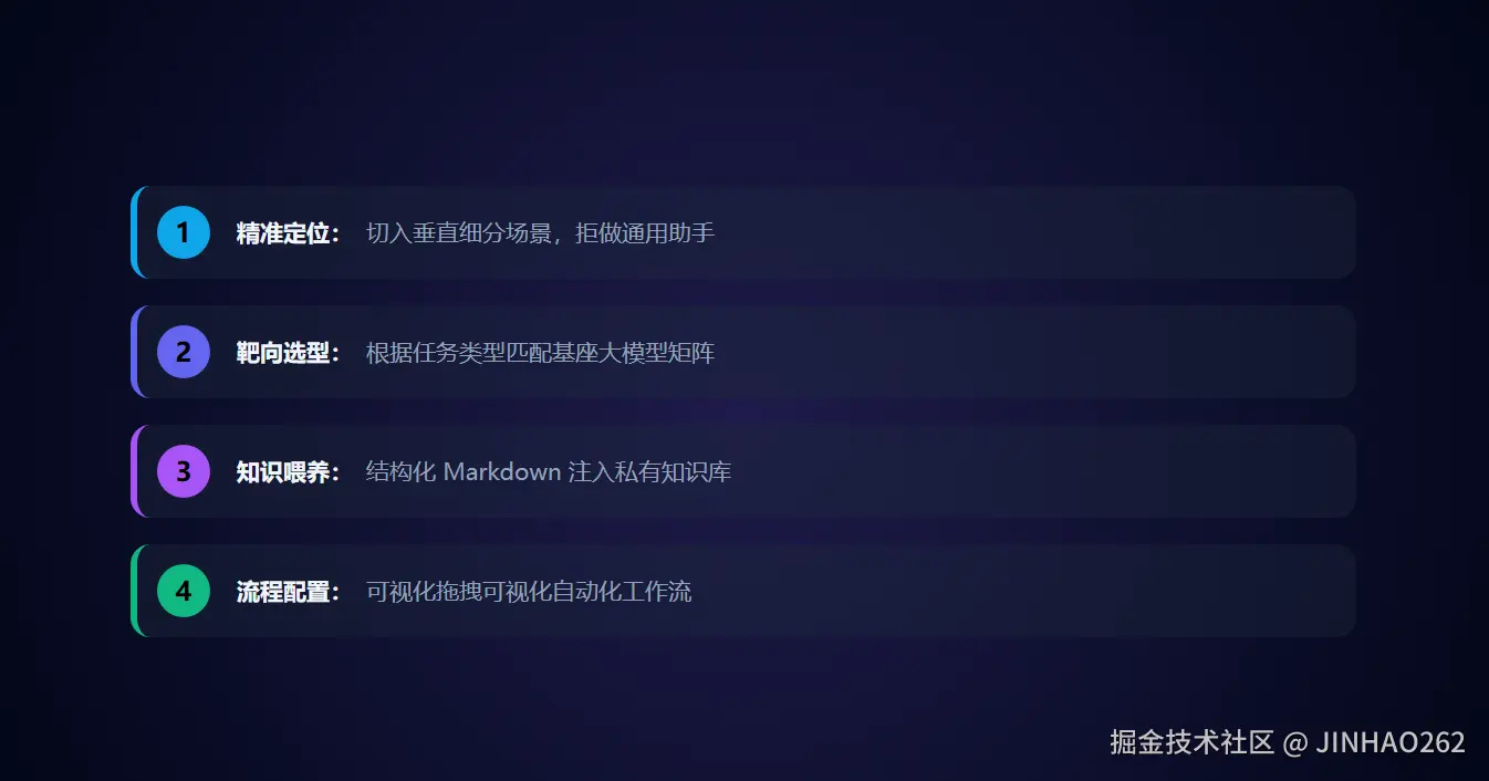 新手最容易犯的错误是试图做一个“无所不能”的通用助手,这往往会沦为平庸的闲聊机器人。必须切入垂直细分场景: