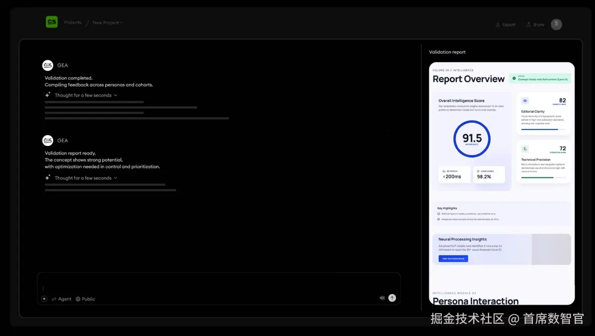 更重要的是,它驻扎在企业的上下文中持续进行推理,不断比对各种全新的市场假设,主动为决策层生成新的洞察线索。它为企业提供的是一套可持续演进的市场认知雷达,彻底淘汰了静态的PPT报告。