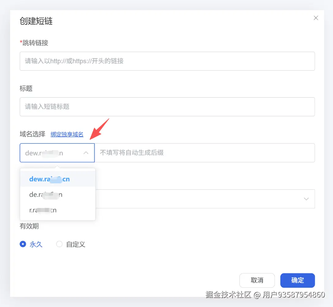 域名列表中就会出现你的品牌域名,点击选择,然后再生成短链接就可以了。