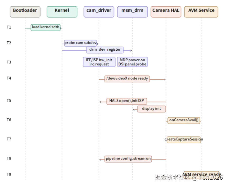 | IFE/IPE 处理 | YUV420 NV12 | ION DMA-BUF fd | ~2–5ms | pipeline stall → 帧延迟 |